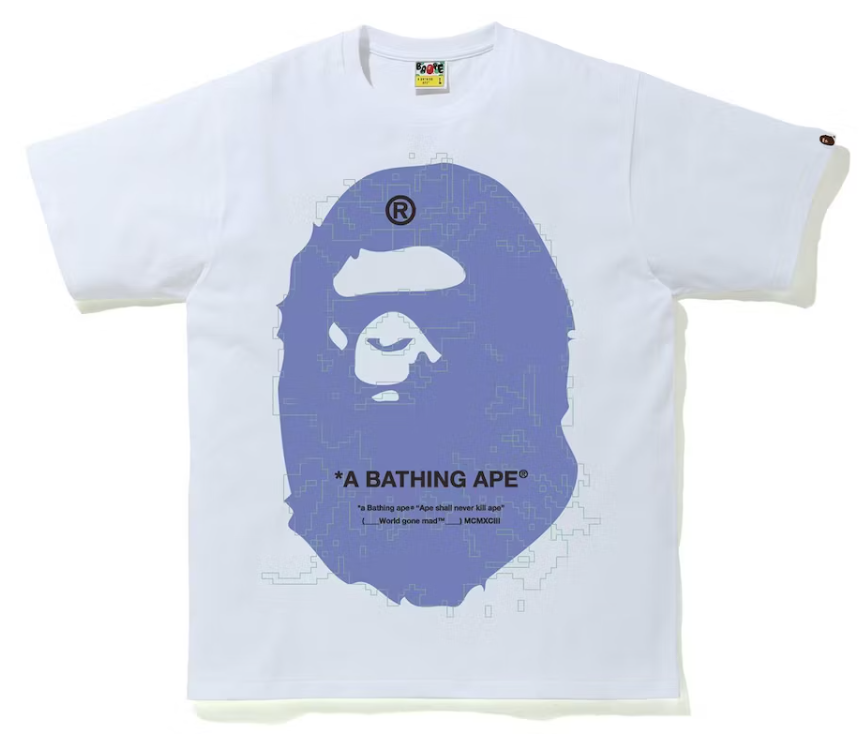 Bape Big Ape Head Digital Mosaic White Tee