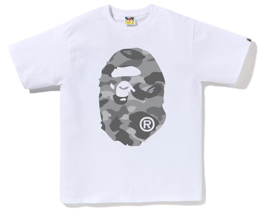 Bape Big Ape Head Honeycomb Grey Camo White Tee