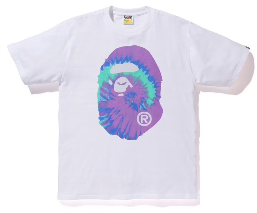 Bape Big Ape Head Purple Pigment Tie Dye White Tee