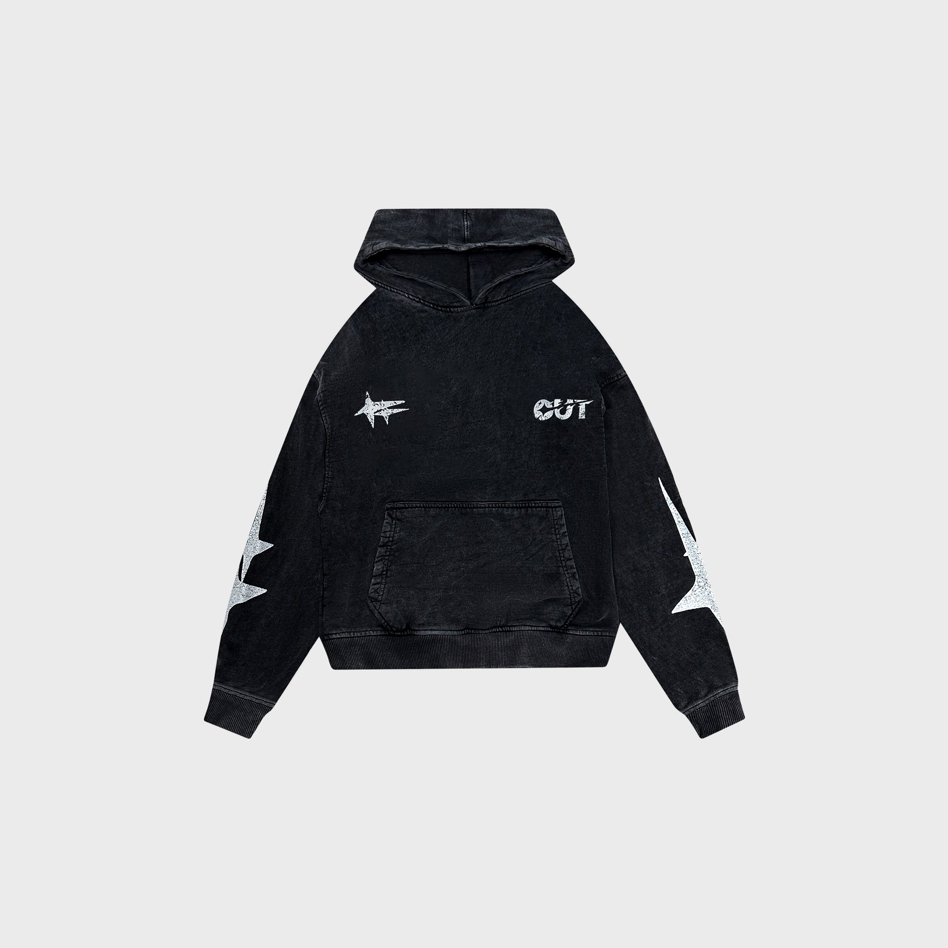 The Shooting Star Hoodie is crafted of premium 480 GSM French Terry cotton. Inspired by many classic hoodies driven to provide an extreme comfort look and feel. This garment features ribbing on the sleeve and waistband, alongside a kangaroo pocket on the body. Finishing touches with four areas of high quality screen print with a specialized distressing process to give it a vintage look.